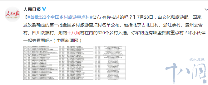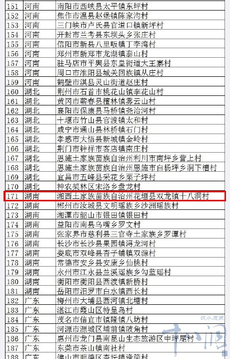 湖(hú)南(nán)十八洞村(cūn)在內(nèi)的(de)320個(gè)鄉(xiāng)"'村(cūn)入選。